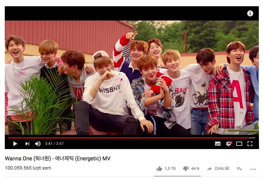 Mới đây, sau những ngày dài chờ đợi kể từ khi K-Pop xuất hiện MV debut của nhóm nữ đạt 100 triệu view thì cuối cùng, cũng đã xuất hiện nhóm nam đạt được thành tích tương tự. Cụ thể, sau gần 1 năm rưỡi phát hành, MV Energetic của các anh chàng Wanna One đã đạt mốc 100 triệu lượt xem trên Youtube. Không chỉ là ca khúc đầu tiên đạt mốc 100 triệu view trong sự nghiệp của nhóm, Energetic còn trở thành MV debut của nhóm nam đạt nhiều lượt xem nhất trên Youtube, sau MV Face của nhóm NU'EST (95.5 triệu lượt xem).