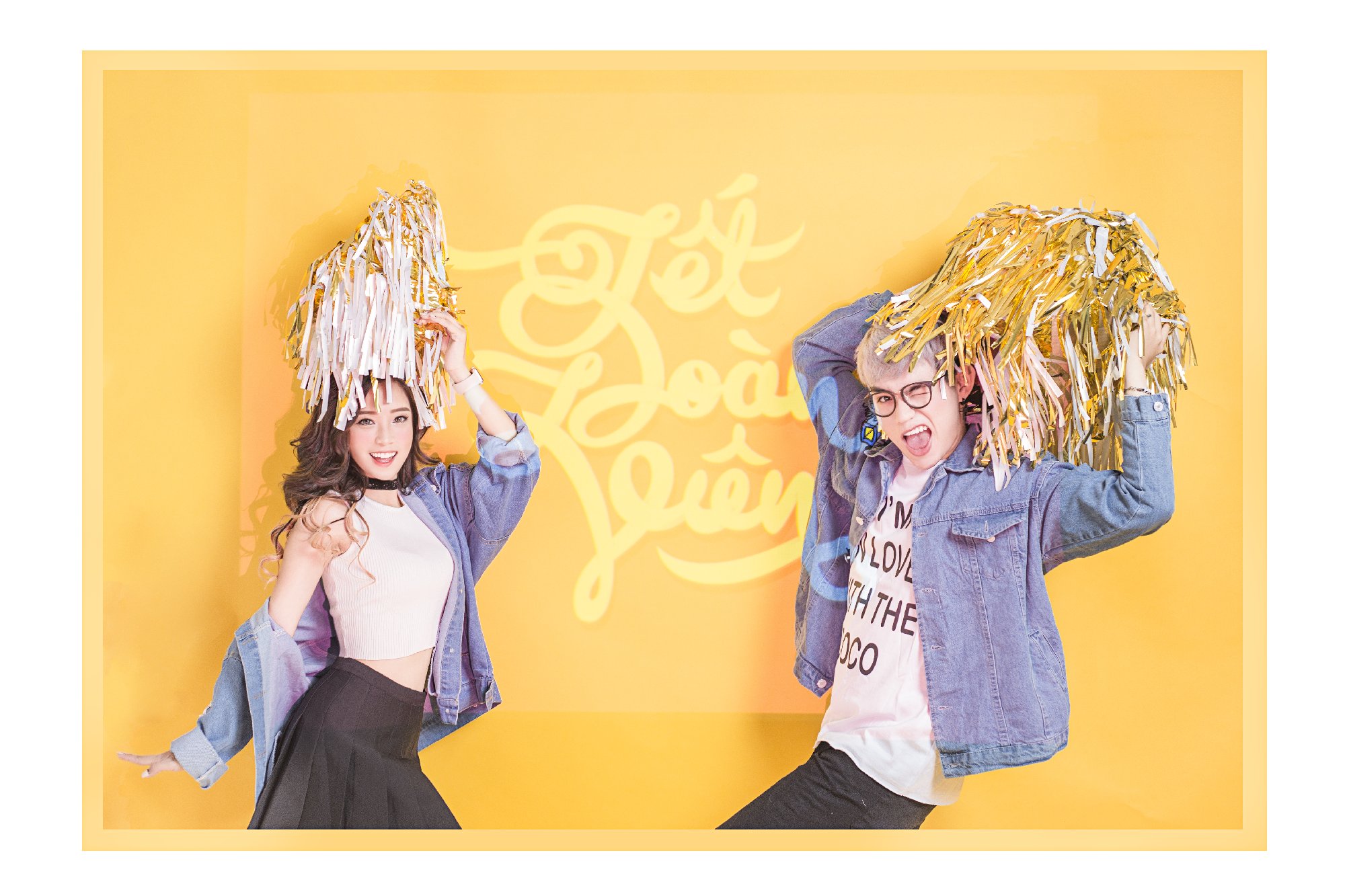 Cặp đôi ca sĩ sử dụng concept trẻ trung, năng động, khác biệt so với những bộ áo dài truyền thống nhưng vẫn đậm mùi Tết.