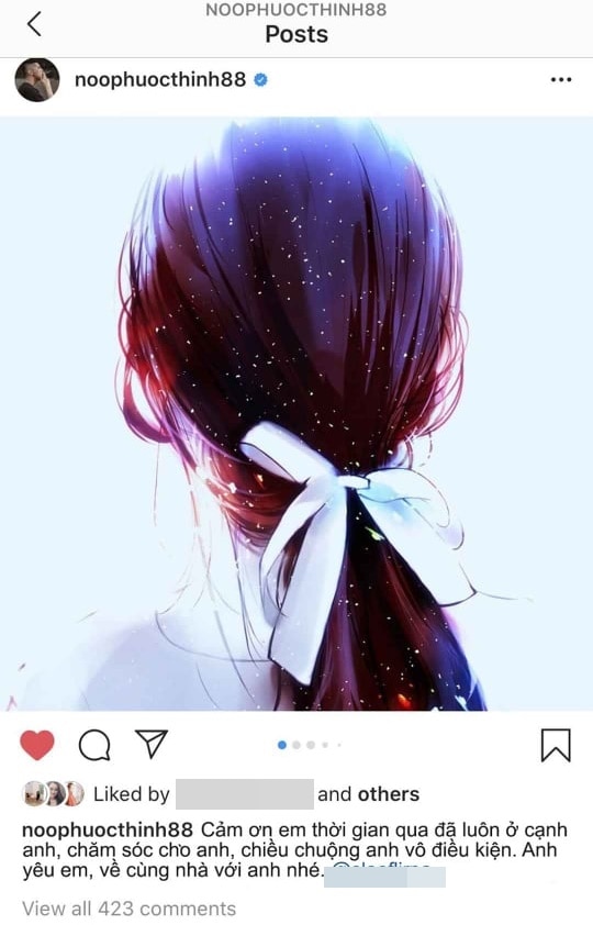 Trước đó, cộng đồng người hâm mộ Noo Phước Thịnh đã vô cùng bất ngờ trước bài đăng của nam ca sĩ, chia sẻ về một người con gái đặc biệt. Cụ thể, nam ca sĩ đã post một bức ảnh vẽ nguệch ngoạc phía sau một cô gái cùng dòng caption: “Cảm ơn em thời gian qua đã luôn ở cạnh anh, chăm sóc cho anh, chiều chuộng anh vô điều kiện. Anh yêu em, về cùng nhà với anh nhé“. Tuy nhiên khi tìm lại trên timeline của Noo Phước Thịnh thì hoàn toàn không có.