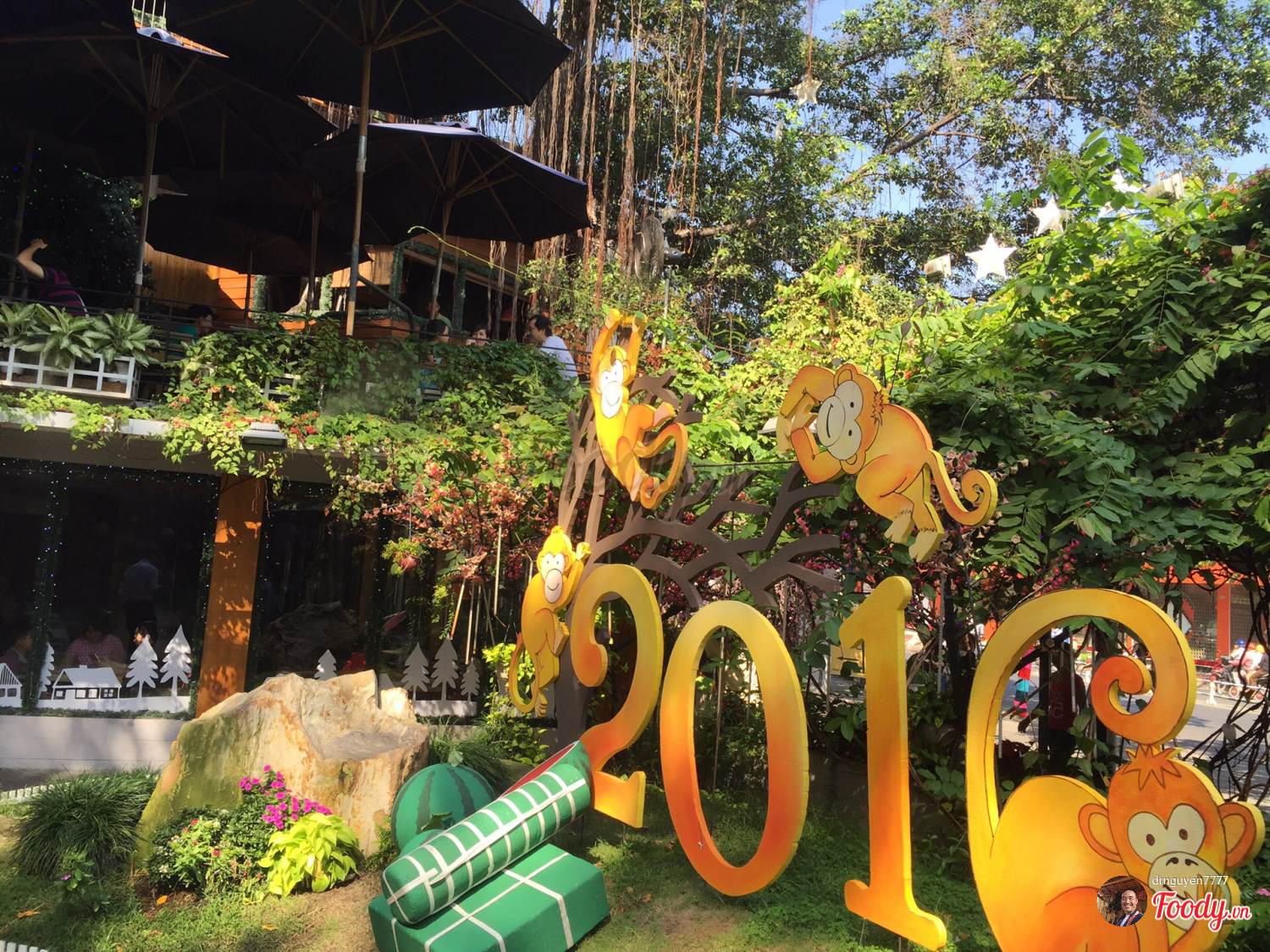 Trang trí theo chủ đề năm khỉ tại một quán cà phê sân vườn. Ảnh: Foody