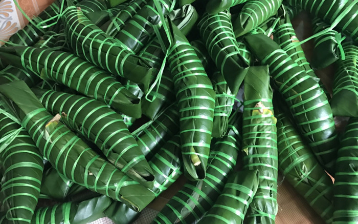 Bánh gói xong giống hệt cái răng bừa, ở giữa phình ra, hai đầu nhỏ lại. Vì thế từ nhỏ chúng mình đều đùa nhau rằng, đã là con em Phụng Công thì ai cũng phải biết... bừa", chị Lan nói.