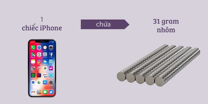 Cụ thể, nhôm chiếm tỷ trọng khoảng 24% của một chiếc iPhone, theo sau bởi sắt với con số 14%, theo một phân tích từ Motherboard. Đồng và coban trong khi đó lần lượt chiếm tỷ trọng 6% và 5%. Có thể bạn chưa biết nhôm là một trong những kim loại có nhiều nhất trên thế giới mặc dù nó không tồn tại ở dạng tinh khiết trong tự nhiên. Thay vào đó, nhôm được sản xuất bằng cách tinh chế quặng bô-xit. Canada hiện là nhà xuất khẩu nhôm lớn nhất tới Mỹ trong khi đó Trung Quốc là nhà sản xuất nhôm lớn nhất thế giới.