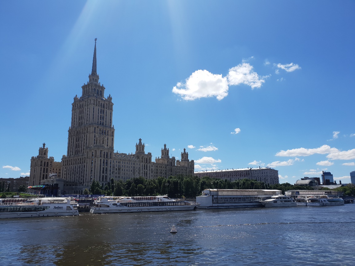 Đây là một trong những bức ảnh có sự tương phản về kiến trúc qua thời gian, màu sắc và bố cục ảnh tôi rất hài lòng khi chụp được. Ngay cả dưới ánh nắng gắt của một ngày hè, nét tương phản đầy hài hòa giữa truyền thống và hiện đại hai bên bờ sông Moskva vẫn hiện lên sống động và cuốn hút.”, travel blogger Hoàng Lê Giang chia sẻ.