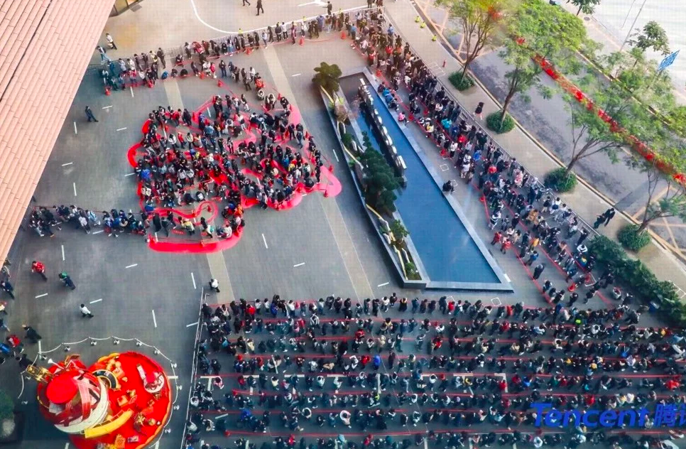 Nhân viên xếp hàng đợi lì xì từ người sáng lập Tencent. (Ảnh: Tencent)