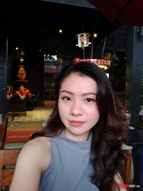 Ảnh chụp bật tính năng xóa phông cho chất lượng khá tốt, hậu cảnh được làm mờ tự nhiên mặc dù camera trước của chiếc điện thoại này chỉ là camera đơn.