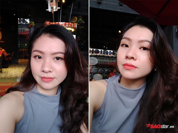Ảnh chụp với chế độ làm đẹp da (bên phải) so với chế độ thông thường (bên phải) cho kết quả khá ấn tượng và tự nhiên.
