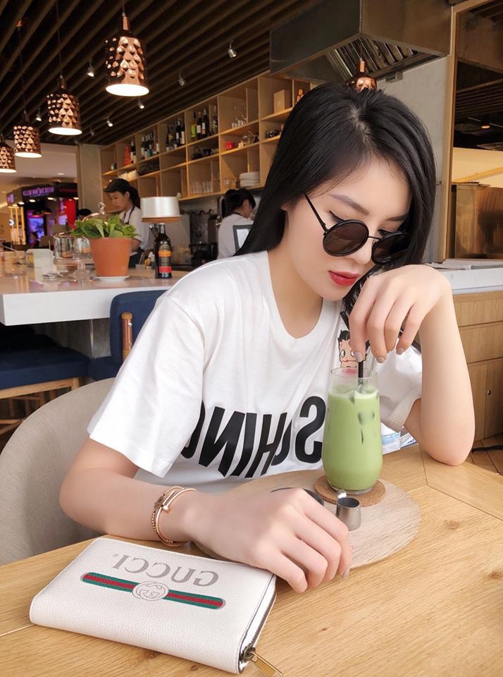 Làn da trắng không tỳ vết của Kỳ Duyên càng mong manh và nổi bật hơn khi cô chọn son đỏ cho mỗi lần dạo phố.