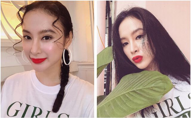 Là một cô nàng rất chuộng mốt môi dày căng mọng, Angela Phương Trinh thiên hẳn về những sắc son đậm màu nổi bật, trong đó son đỏ nhung hay đỏ cam được cô nàng ưu ái hơn cả.