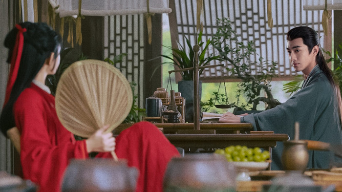 Trong bức ảnh được tung ra, có thể thấy Triệu Lệ Dĩnh mặc y phục đỏ thong thả cầm quạt, Lâm Canh Tân ngồi từ xa nhìn người yêu đầy tình tứ. Ngay lập tức cư dân mạng tỏ rõ sự thích thú vì tương tác hoá học bùng nổ của cả hai. Nhiều bình luận còn hài hước cho rằng đây đúng là ánh mắt si tình của các cặp tình nhân.