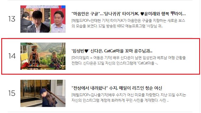 Đứng thứ 14 trong bảng xếp hạng các tin tức được đọc nhiều nhất trên Naver.