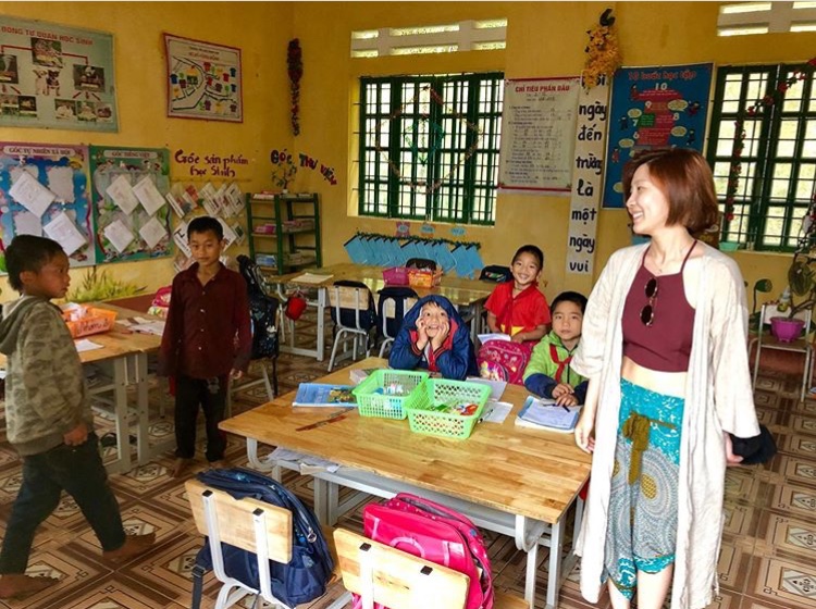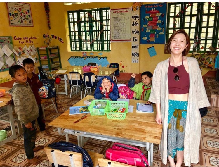 Shin Da Eun chụp ảnh cùng với các em nhỏ vùng cao trong một lớp học. Cô nói: “Thời gian ở Sapa rất ngắn. Xem một cuốn sách, ăn uống, đạp xe đạp quanh làng ở trên núi mất nửa ngày. Đối với tôi, đi du lịch là bản thân có thể đứng lên và suy nghĩ lại mọi thứ. Phải thực sự nhìn thấy, chân thành và bỏ thời gian tiếp cận với mọi thứ sâu sắc”.