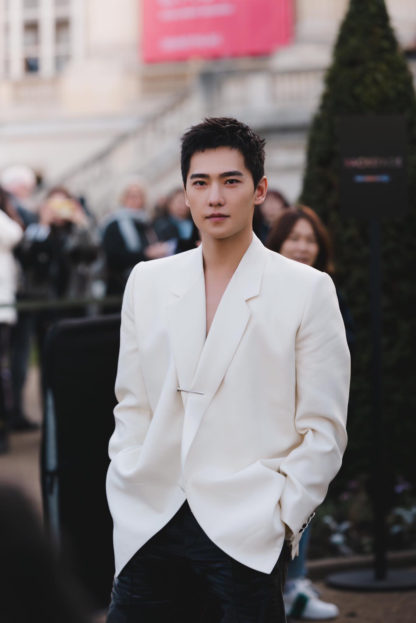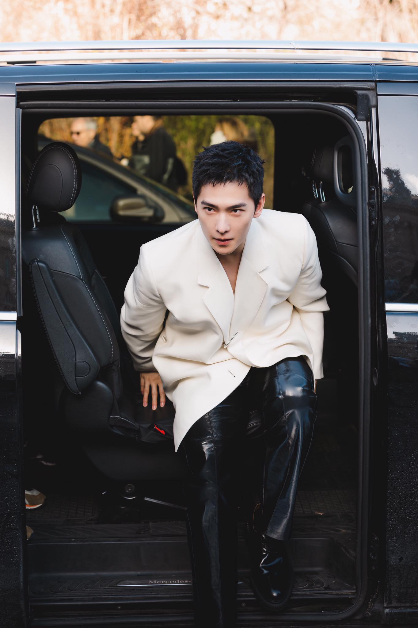 Kết hợp hài hòa giữa Vest trắng lịch lãm và quần da cá tính, nam diễn viên sinh năm 1991 mang một khí chất hòa quyện như một quý ông nhưng lại không kém phần trẻ trung, độc đáo. Nhan sắc nổi bật của anh đã khiến không ít cô gái tại tuần lễ thời trang xao xuyến.
