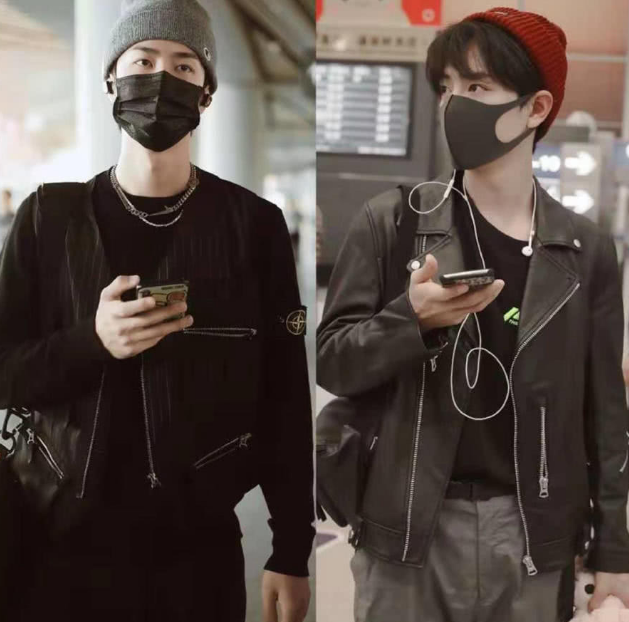Dù trong cuộc sống bình thường, phong cách của Tiêu Chiến và Vương Nhất Bác không giống nhau nhưng ở một góc độ nào đó thì lại tương đồng đến ngạc nhiên. Cả hai cùng đội chiếc mũ có kiểu dáng giống nhau (chỉ khác màu sắc), khoác lên mình chiếc áo khoác đen đơn giản nhưng cool ngầu.