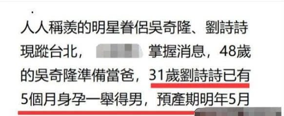 Trên Weibo của Ngô Kỳ Long trong thời gian gần đây toàn là những hình ảnh về món ăn dành cho người mang thai. Anh chàng liên tục bồi bổ cho Lưu Thi Thi, chờ đợi ngày bảo bối của hai người chào đời. Ngô Kỳ Long chẳng ngại chuyện vợ tăng ký, thậm chí anh sẵn sàng “mập” lên cùng vợ. Chỉ mới mấy tháng chăm vợ mà số ký của Ngô Kỳ Long cũng tăng theo vùn vụt. Theo truyền thông xứ Đài cho biết, dự kiến thiên thần của cặp vợ chồng Tứ A Ca và nàng Nhược Ky của Bộ Bộ Kinh Tâm sẽ chào đời vào tháng 5 sắp tới.