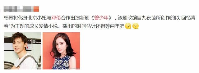Mới đây, thông tin về khả năng Đặng Luân đóng với Dương Mịch và Địch Lệ Nhiệt Ba trong phim Từng niên thiếu đã gây xôn xao mạng xã hội Weibo.