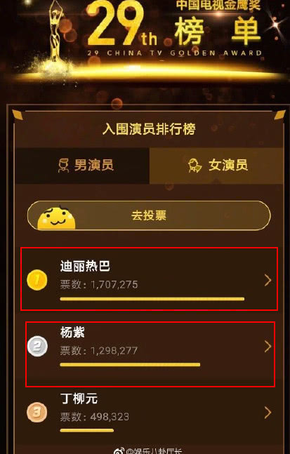 Nói đi thì cũng nói lại trong thế giới giải trí này thì cái danh xưng Nữ thần Kim Ưng này cũng thật đắt giá. Điều này đã làm cho Dương Tử phải tự hạ mình mà tìm kiếm lượt bình chọn còn rơi vào cuộc tranh giành đầy khốc liệt, nhưng sau cùng cũng thất bại dưới tay của Địch Lệ Nhiệt Ba.