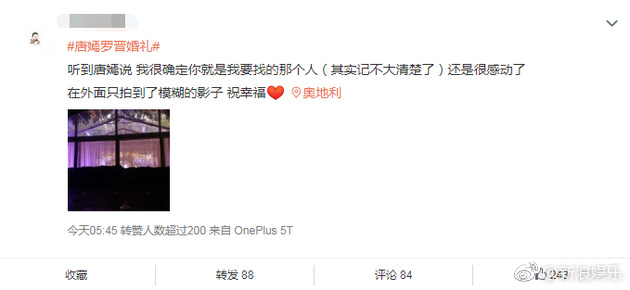 Một số người dân đã có mặt tại nơi tổ chức đám cưới và săn được một vài bức ảnh hiếm hoi, bên cạnh những tấm hình mà cô dâu chú rể tung lên Weibo. Họ nghe được khoảnh khắc quan trọng của Đường Yên và La Tấn đang thực hiện lời thề nguyện trong hôn lễ.