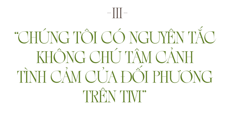 Thuý Diễm: Thành thực thì Diễm nghĩ ở mỗi cảnh quay đó, ai cũng sẽ có chút khó chịu trong lòng. Ngay cả Diễm cũng vậy! Vì vậy, từ ban đầu gia đình Diễm luôn có một quy tắc mà không ai nói với ai hết: Không chú tâm vào cảnh tình cảm của đối phương trên tivi. Ở trường hợp bắt buộc như vô tình thấy, hay em muốn anh xem để thử cảnh quay đó có tốt không thì mới xem, còn lại “mắt không thấy thì tim không đau”. (Cười!).