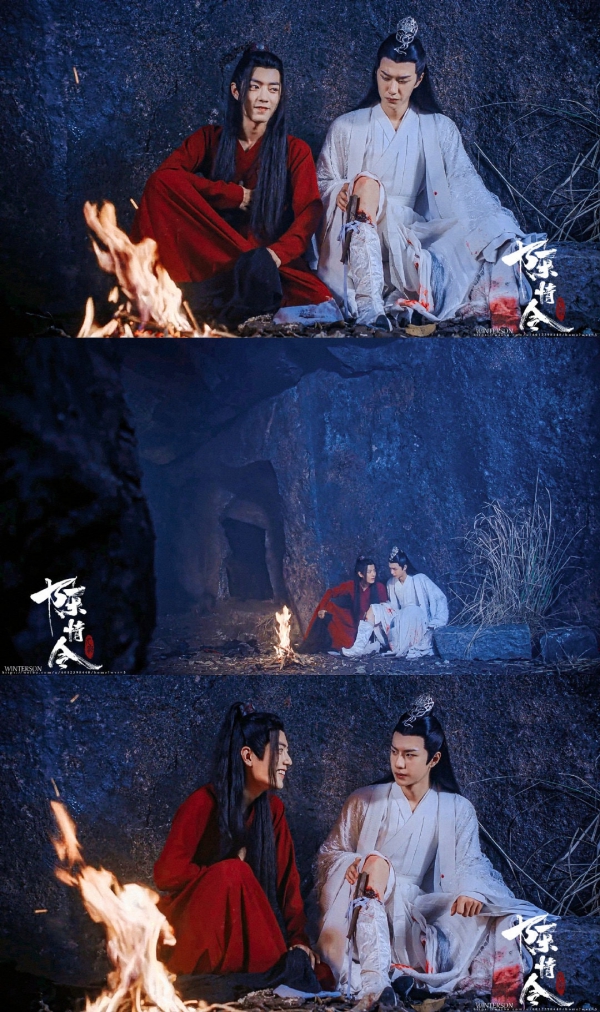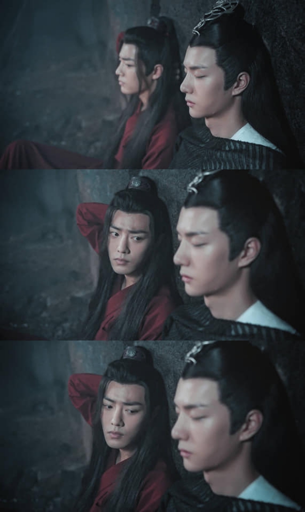 7: Ngày đó Nguỵ Vô Tiện cứu một nhà Ôn thị, Lam Trạm chỉ tuyệt nhiên đứng nhìn, không ngăn chặn. Khi bóng lưng đoàn người khuất dạng, nước mắt của kẻ cao cao tại thượng kia rơi không ngừng.