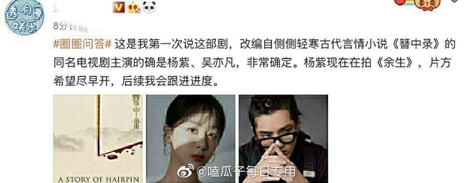 Gần đây, trên mạng lại xuất hiện tin tức về dự án chuyển thể. Theo thông tin này cho biết, Ngô Diệc Phàm và Dương Tử sẽ là hai cái tên đảm nhận vai nam - nữ chính của Trâm trung lục.