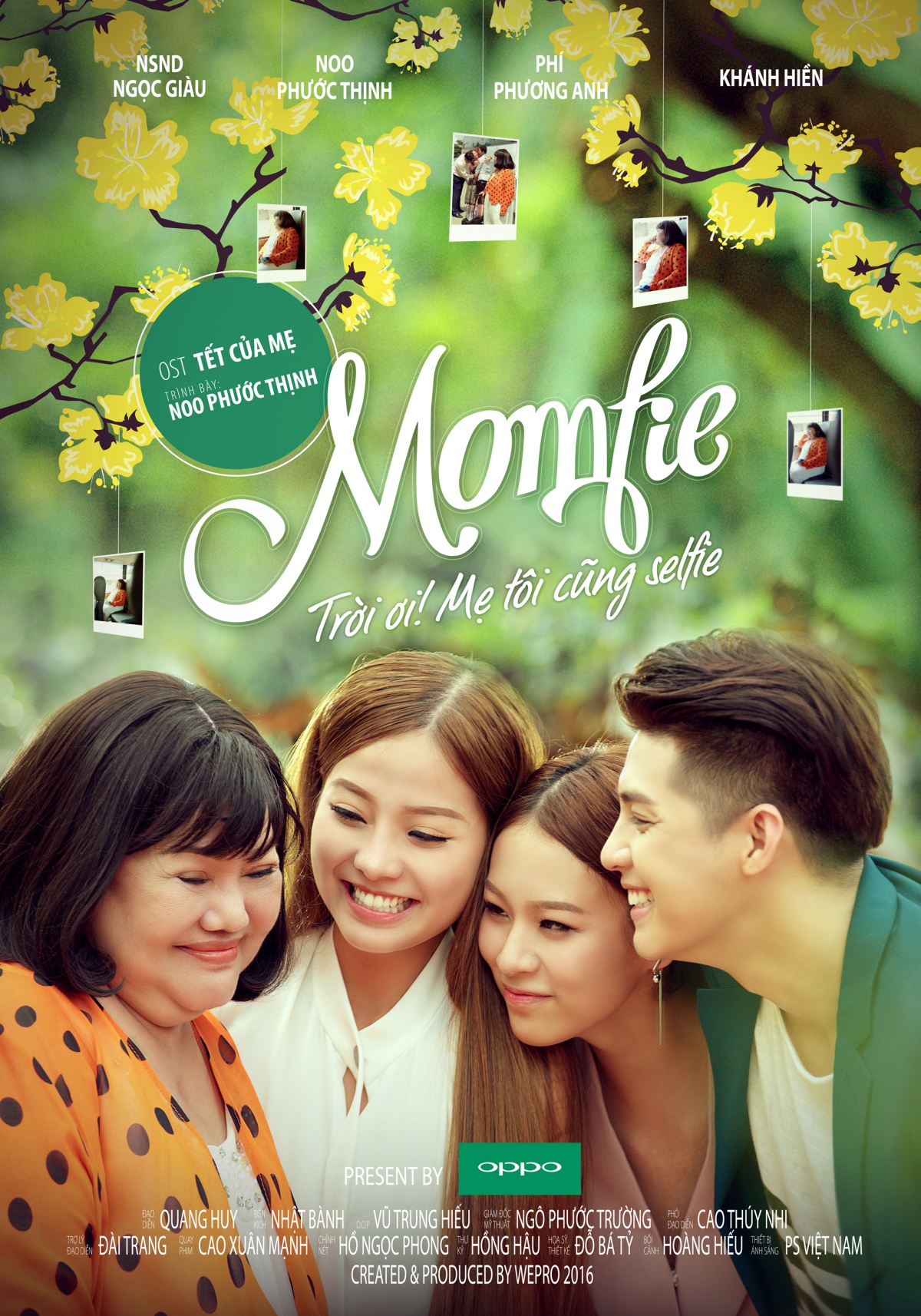 Với nhan sắc “một chín một mười”, phim ngắn Momfie - Trời ơi! Mẹ tôi cũng selfie sẽ là nơi đọ sắc của hai mỹ nhân trẻ bên cạnh sự hài hước bất chấp tuổi tác của NSND Ngọc Giàu. Hết rộn ràng cùng Noo Phước Thịnh trong teaser rồi lại đến “tạo nét” cùng Phí Phương Anh và Khánh Hiền, khán giả đang thắc mắc liệu mối quan hệ giữa họ trong phim là gì? Để trả lời câu hỏi đó, nhà sản xuất đã kịp thời tung ra poster chính thức của phim, hội tụ đủ 4 nhân vật chính gồm: NSND Ngọc Giàu, Noo Phước Thịnh, Phí Phương Anh và Khánh Hiền.