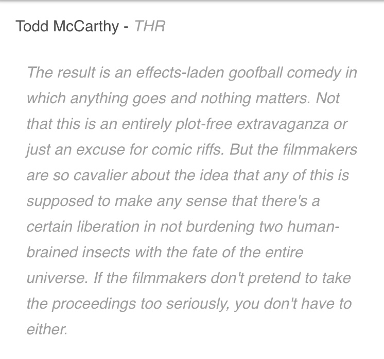 Bộ phim khiến khán giả phần nào trút bỏ được gánh nặng từ Avengers: Infinity War bởi tính chất lạc quan, vô tư, bất chấp sự đời nhưng lại không hề nhàm chán hay hài hước quá lố. Rõ ràng các nhà làm phim đã có ý thực hiện một bộ phim không quá nghiêm túc và nặng nề nên khán giả xem phim cũng không nên cố tình bắt bẻ làm gì.