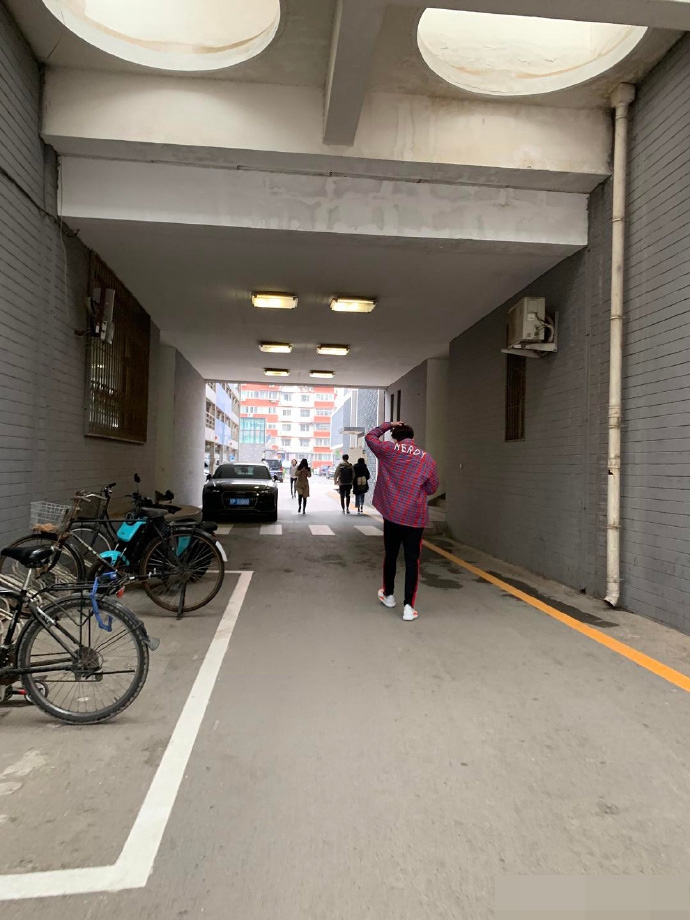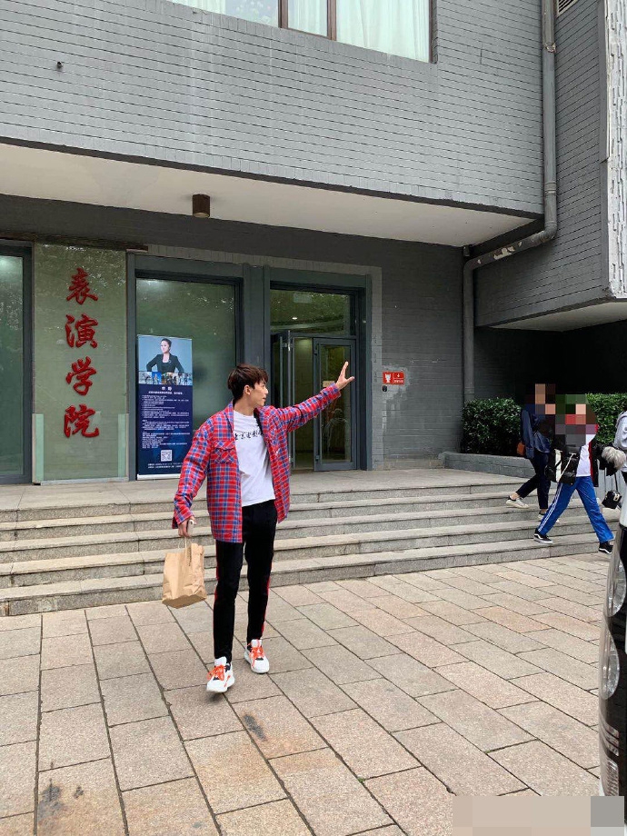 Thật sự, có những người hâm mộ đã rất may mắn, không hẹn mà gặp mặt Ngô Lỗi ở trước cửa Học viện Điện ảnh Bắc Kinh. Có thể thấy được anh chàng là chàng sinh viên rất ngoan, mặc cả áo thun in chữ “Bắc Kinh Điện ảnh…” của trường để vào học.