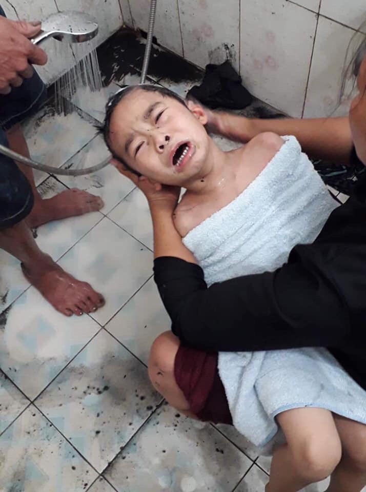 Cậu bé chưa hết hốt hoảng sau sự việc. Ảnh: Du Nguyễn