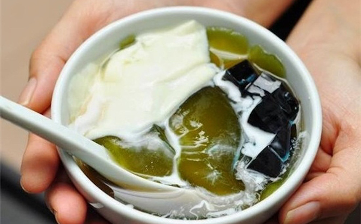 Khi cho vào miệng, vị tàu hũ mềm tan chảy, nước cốt dừa béo ngậy, bánh lọt thơm mùi lá dứa và trân châu giòn dai kết hợp với nhau vô cùng đã miệng.