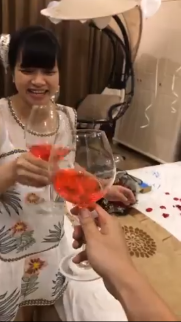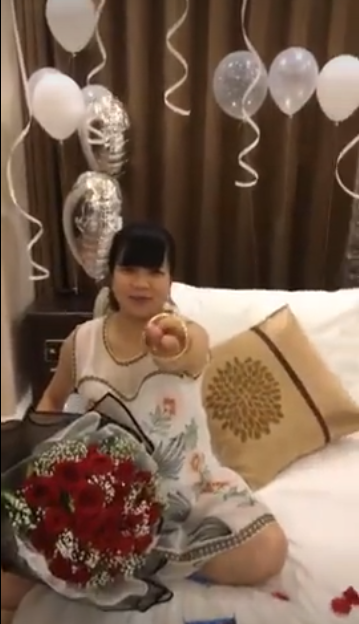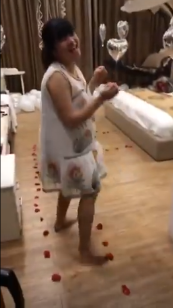 Trong không gian lãng mạn với nhạc, nến, bóng bay và hoa, tiếng cười hạnh phúc của người vợ khiến dân mạng phải thốt lên “hạnh phúc như thế là quá đủ”.
