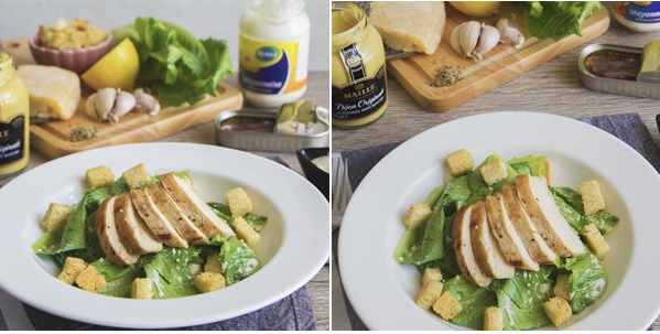 Bên cạnh thịt gà có sự kết hợp của rau xanh, ở đây bạn có thể sử dụng một loại xà lách có tên Romaine, kết hợp với những nguyên liệu đặc trưng như phô mai parmesan, vỏ chanh và nước cốt chanh, sốt mayonnaise, dầu olive… Sự kết hợp này sẽ khiến bạn có cảm giác sẽ không nhàm chán.