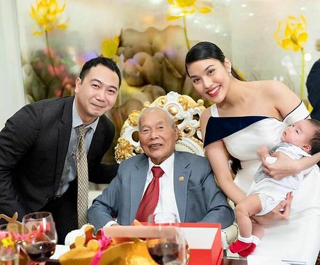 Lan Khuê bế con trai, nở nụ cười rạng rỡ khi chụp ảnh cùng ông nội của Tuấn John.