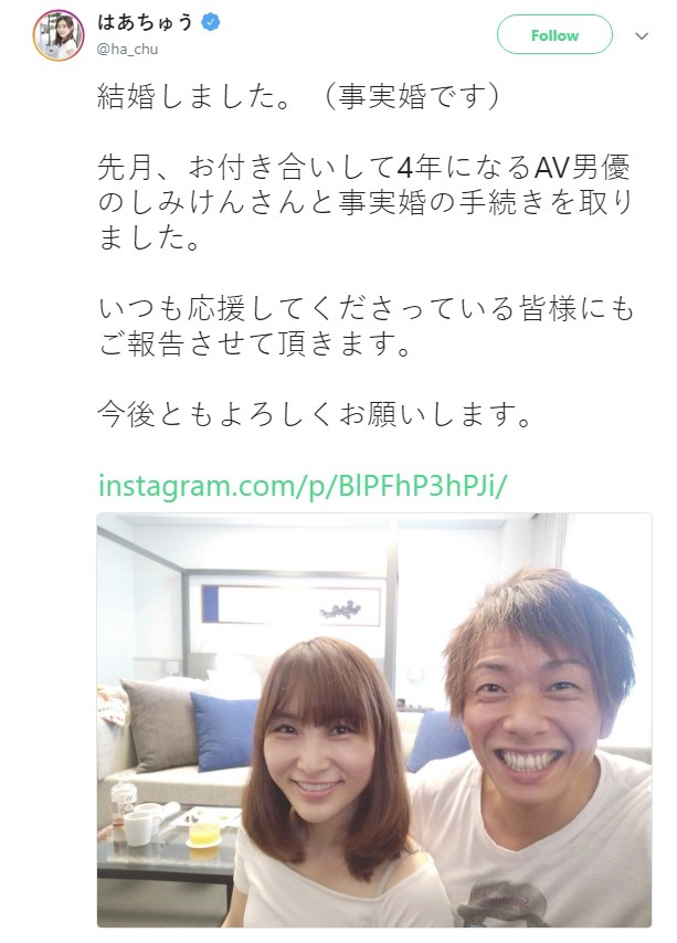 Trên Twitte của mình, Ito Haruka cũng gửi lời cảm ơn tới các fan hâm mộ đã hỗ trợ cả 2 trong thời gian này. Tuy nhiên, trước đó có thông tin cho rằng Ken Shimizu thường xuyên bạo hành vợ sắp cưới và còn “ve vãn” các cô gái khác. Nam diễn viên không lên tiếng về vấn đề này.