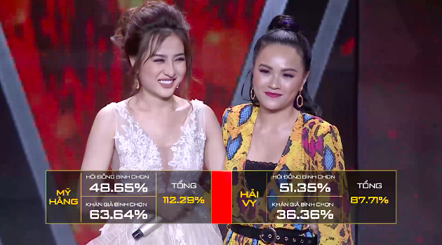 Kết thúc phần thi, số điểm mà cả 2 giành được khá xuýt sao. Hải Vy nhận được 19/21 điểm và Mỹ Hằng có được 18/1 điểm từ Hội đồng bình chọn. Tuy nhiên, ở phần bình chọn của khán giả, thành viên đội HLV Thu Phương may mắn khi nhận được hơn 50% trên tổng số phiếu bình chọn và chính thức bước vào phần thi kế tiếp. Hải Vy đành ra về trong sự tiếc nuối của nhiều người.