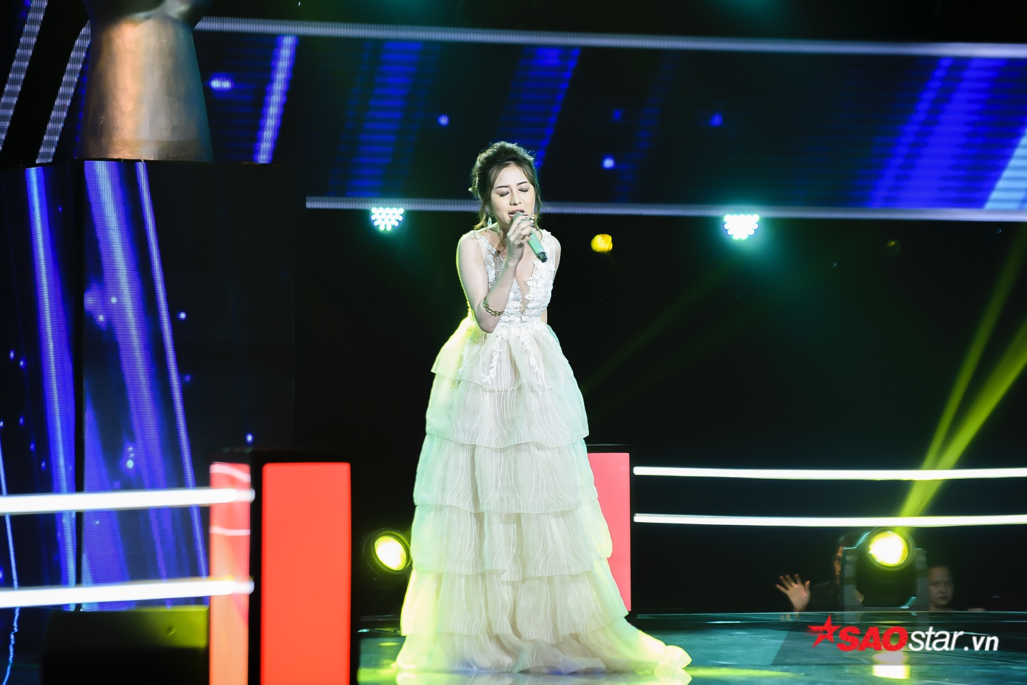 Trong khi đó, Mỹ Hằng vẫn trung thành với những ca khúc ballad nhẹ nhàng. Lần này, cô chọn ca khúc mang tên Chờ người nơi ấy để dự thi. Vẫn là chất giọng nội lực trong một cô gái nhìn có vẻ mong manh, mỹ nhân đội HLV Thu Phương đã hoàn thành xuất sắc bài hát với những nốt treo khó nhằn đầy thách thức.