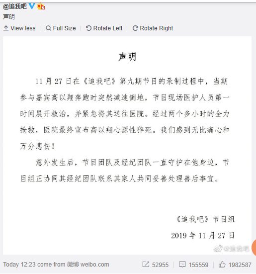 Tối qua, nam tài tử Cao Dĩ Tường ngất xỉu được đưa đi cấp cứu khi tham gia ghi hình show thực tế Đuổi theo tôi đi từ khuya đến tận sáng. Chỉ vài tiếng sau đó, truyền thông Trung Quốc dậy sóng và sốc với thông tin chính thức Cao Dĩ Tường đã qua đời vì đột quỵ ở tuổi 35. Những bác sỹ tại bệnh viện đã tận lực cứu chữa suốt 2 giờ nhưng không thể mang nhịp tim của anh trở lại.