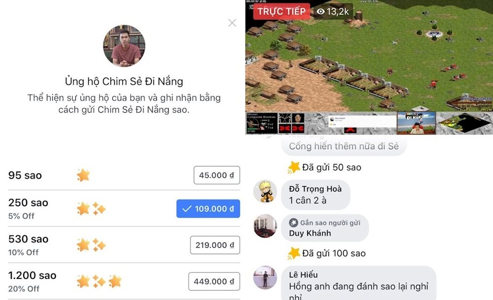 Cụ thể, Facebook vừa chính thức cho phép những khán giả theo dõi livestream có thể tặng sao cho game thủ tại Việt Nam. Theo đó, cứ mỗi sao nhận được, các streamer lại được trả khoản tiền tương đương 0,01USD.