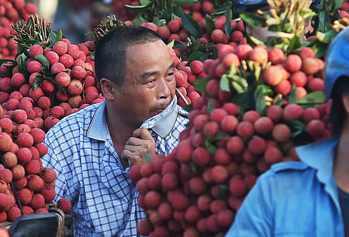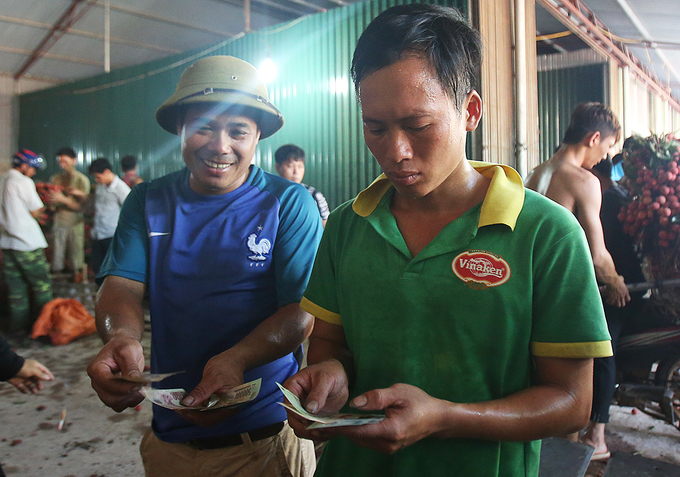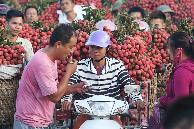 Các điểm thu mua lớn chủ yếu do lái buôn Trung Quốc thu gom. Những người này dùng khẩu hình và ngôn ngữ cơ thể để trả giá từng sọt vải.