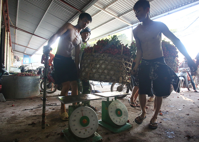 Vải đưa lên bàn cân tổng trọng lượng, sau đó trừ sọt, trừ cuống từ 9 đến 20 kg/100 kg. Đây là thiệt thòi lớn nhất của người bán vải bởi tất cả chỉ là áng chừng và thỏa thuận miệng.