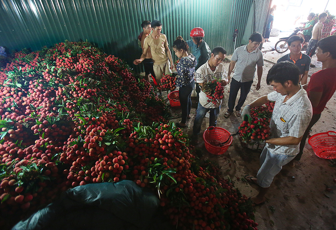 Từng chùm vải được đội ngũ tuyển lọc và bỏ đi quả sâu thối, kém chất lượng. “Sau khi thu mua hết vải ở Hải Dương, gia đình mới chuyển lên Bắc Giang. Từ 5h đến 17h, mỗi ngày tôi gom 60 tấn đóng 4 container xuất đi Trung Quốc, đến hết mùa thì thôi”, lái buôn Võ Thị Loan chia sẻ.