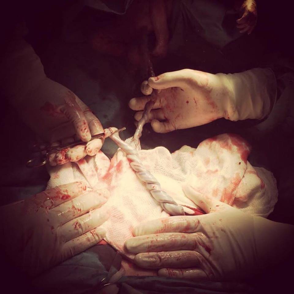 Ca sinh đôi có dây rốn xoắn tít. (Ảnh bác sĩ cung cấp).