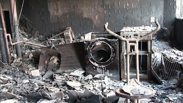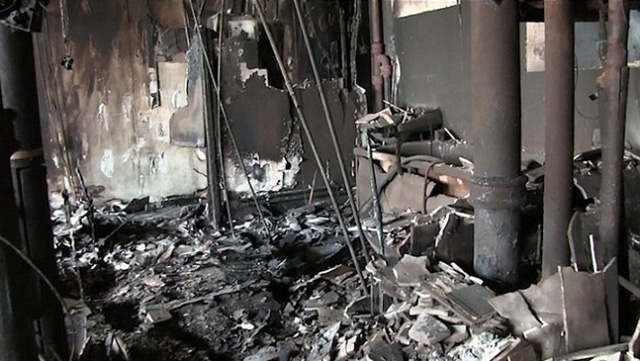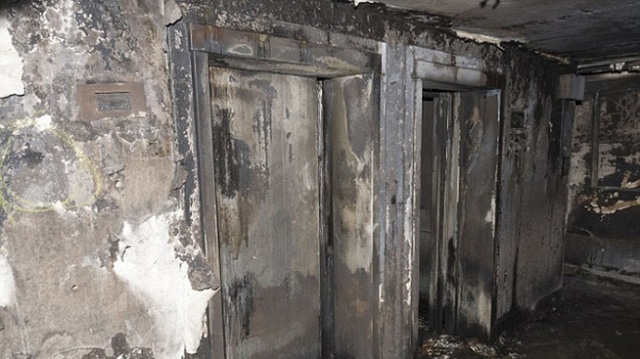 Cảnh đổ nát như “vùng chiến sự” bên trong tòa chung cư bị cháy. (Ảnh: Dailymail)