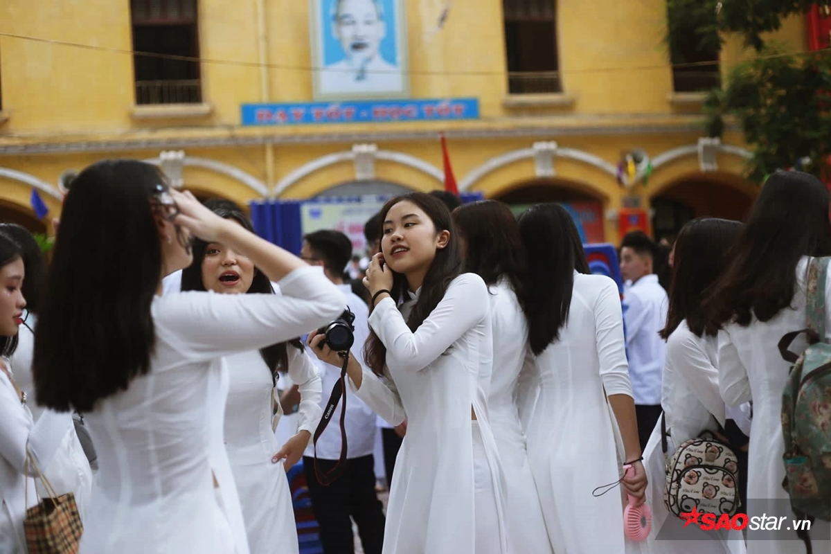 Áo dài trắng cũng giúp nữ sinh Việt Đức tỏa sáng, đẹp hết nấc trong ngày lễ tựu trường.