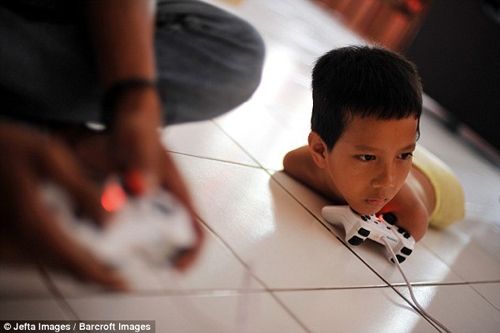 Thời gian rảnh rỗi, Tiyo thích chơi Playstation. Em sẽ dùng cằm để điều khiển trò chơi một cách thành thạo.