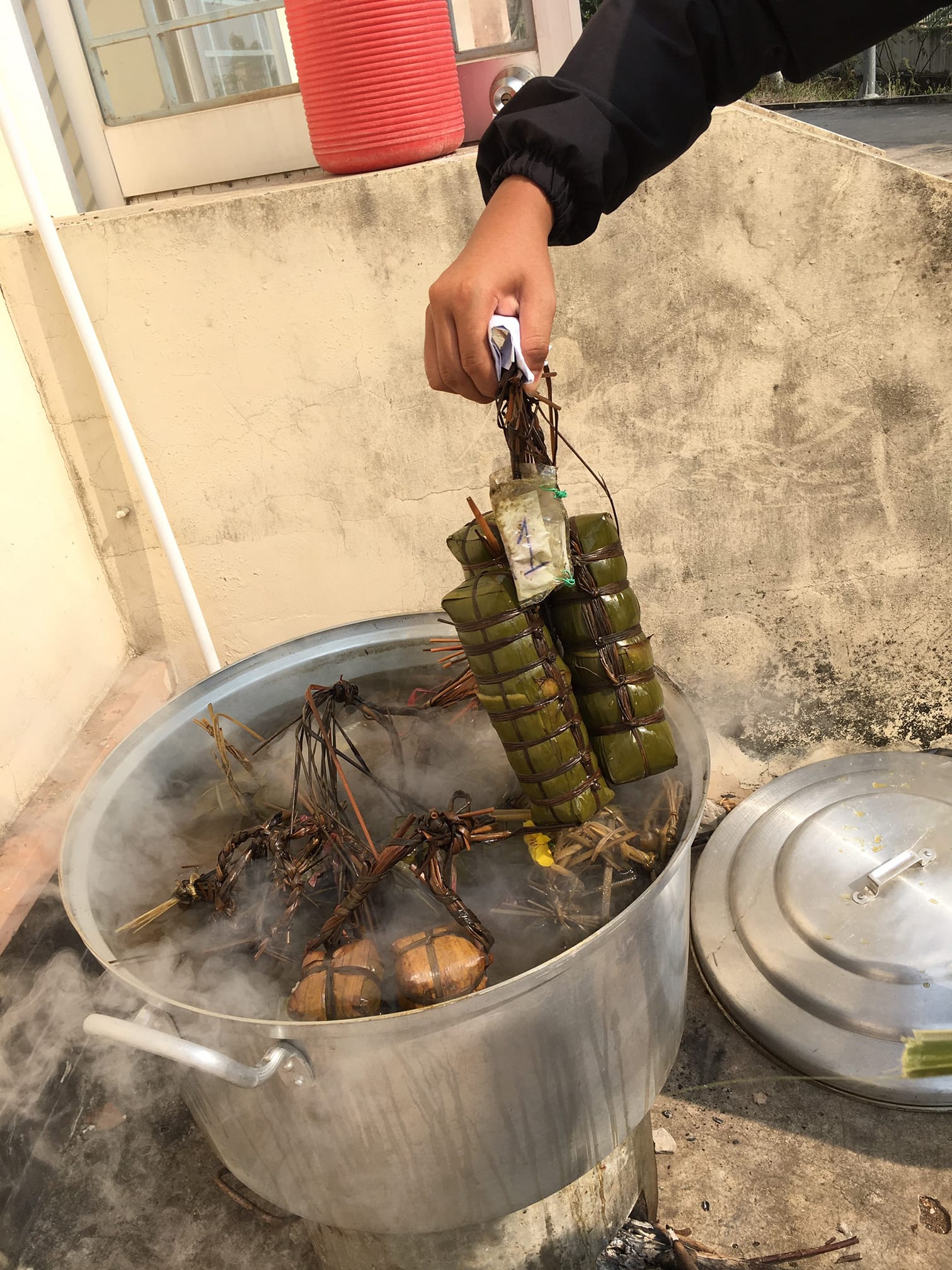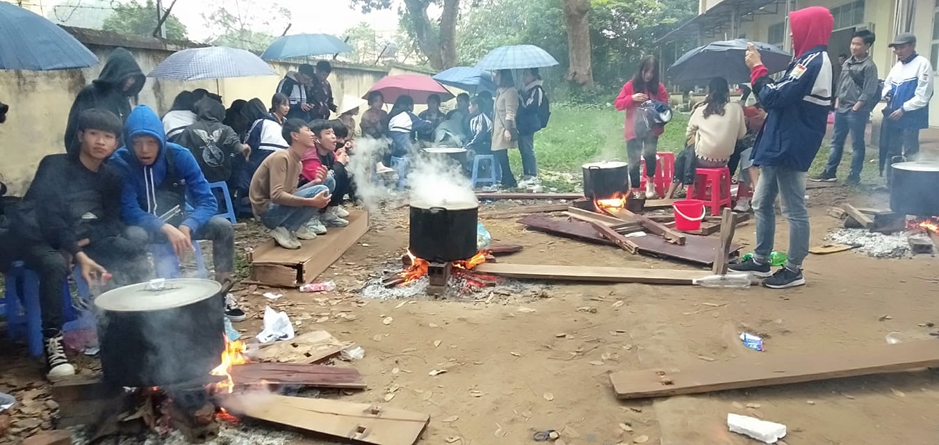Bên cạnh đó, dưới phần bình luận, không ít các bạn học trò cũng chia sẻ hình ảnh những nồi bánh chưng đang đỏ lửa do nhà trường tổ chức: