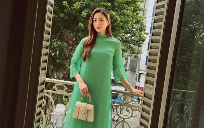 Đầu năm 2025, Lương Thùy Linh khoe sắc vóc ngọt ngào với áo dài truyền thống.
