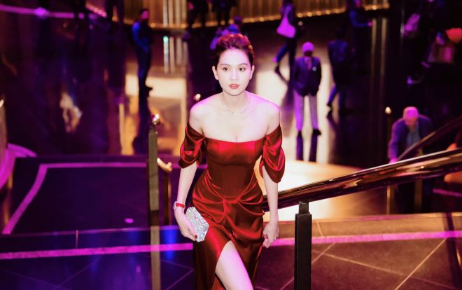Mới đầu năm, Ngọc Trinh đã táo bạo che vòng 1 hờ hững với gam đỏ burgundy
