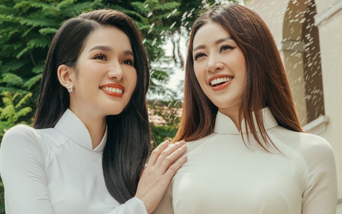 Hoa hậu Khánh Vân và Á hậu Phương Anh diện áo trắng nền nã nhân ngày tựu trường
