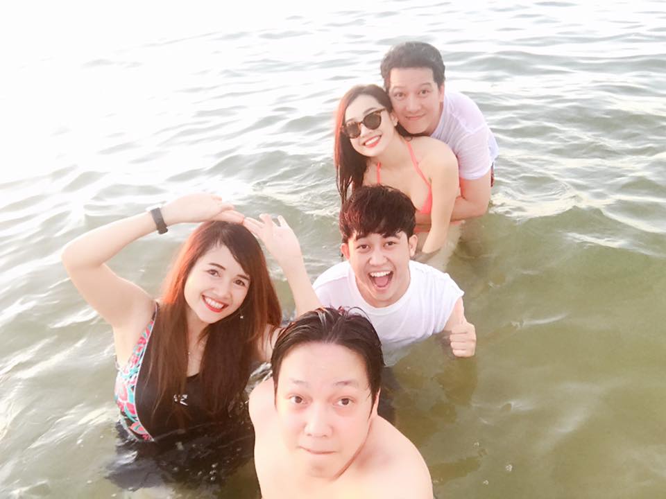 Trước đó, cả hai đã đi bơi cùng với chị gái Nhã Phương và một số bạn bè.