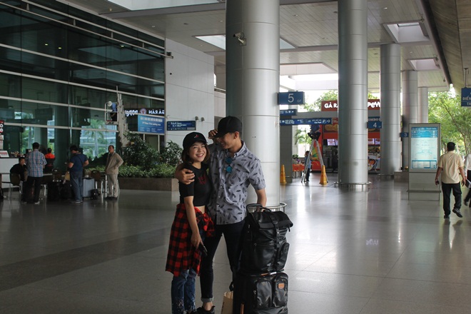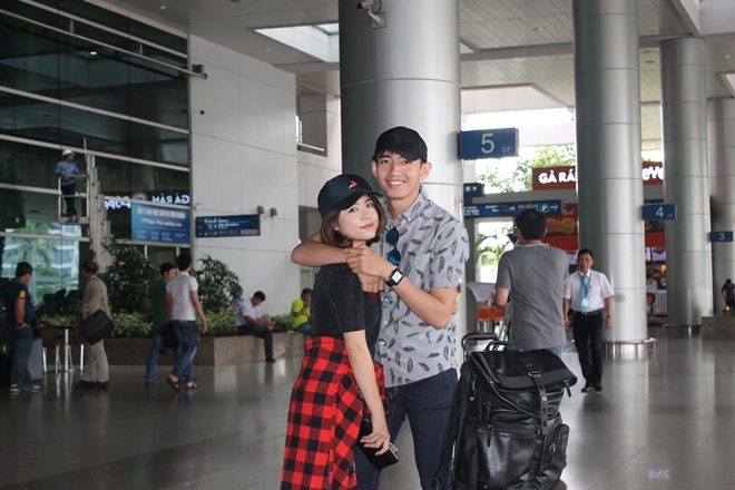 Trong chuyến đi lần này, Quang Đăng bộc bạch anh không còn cảm giác cô đơn nữa vì Thái Trinh đã đích thân ra tận sân bay Tân Sơn Nhất (TP.HCM) tiễn anh. Cả hai diện bộ trang phục giản dị, trẻ trung.
